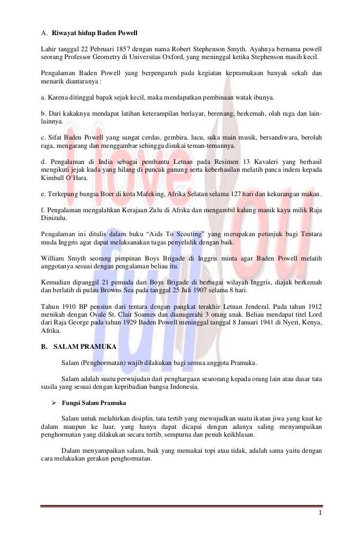 And this concludes its free preview. Mengetahui sejarah singkat pramuka dunia. Materi sku pramuka penegak bantara. Presentation by the person who uploaded it. Kumpulan materi pramuka penegak kali ini masih merupakan ulasan yang sama seperti materi sebelumnya tentang kumpulan materi pramuka penggalang, admin hanya mengkategorikan beberapa materi pramuka yang ada menjadi lebih tepat sasaran dengan tujuan mempermudah pengunjung dan pembaca blog pramuka indonesia.