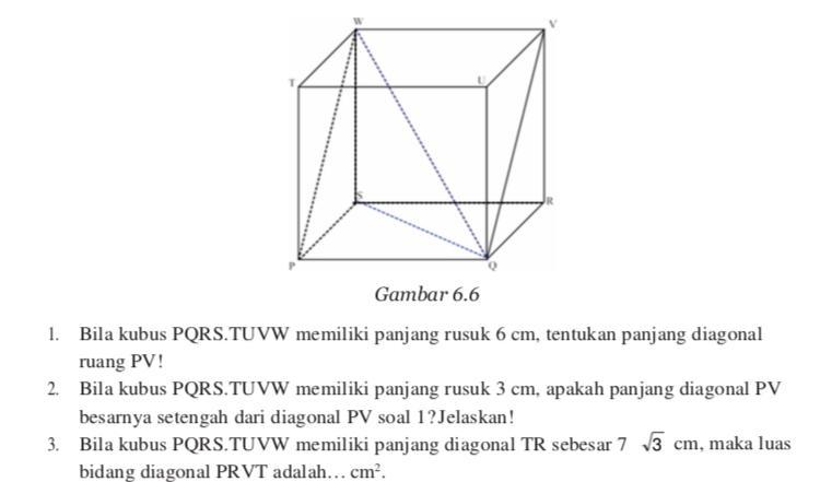 Diagonal ruang kubus = s x √3 = s√3 rumus diagonal ruang kubus. Perhatikan kubus rstu.vwxy di bawah ini!